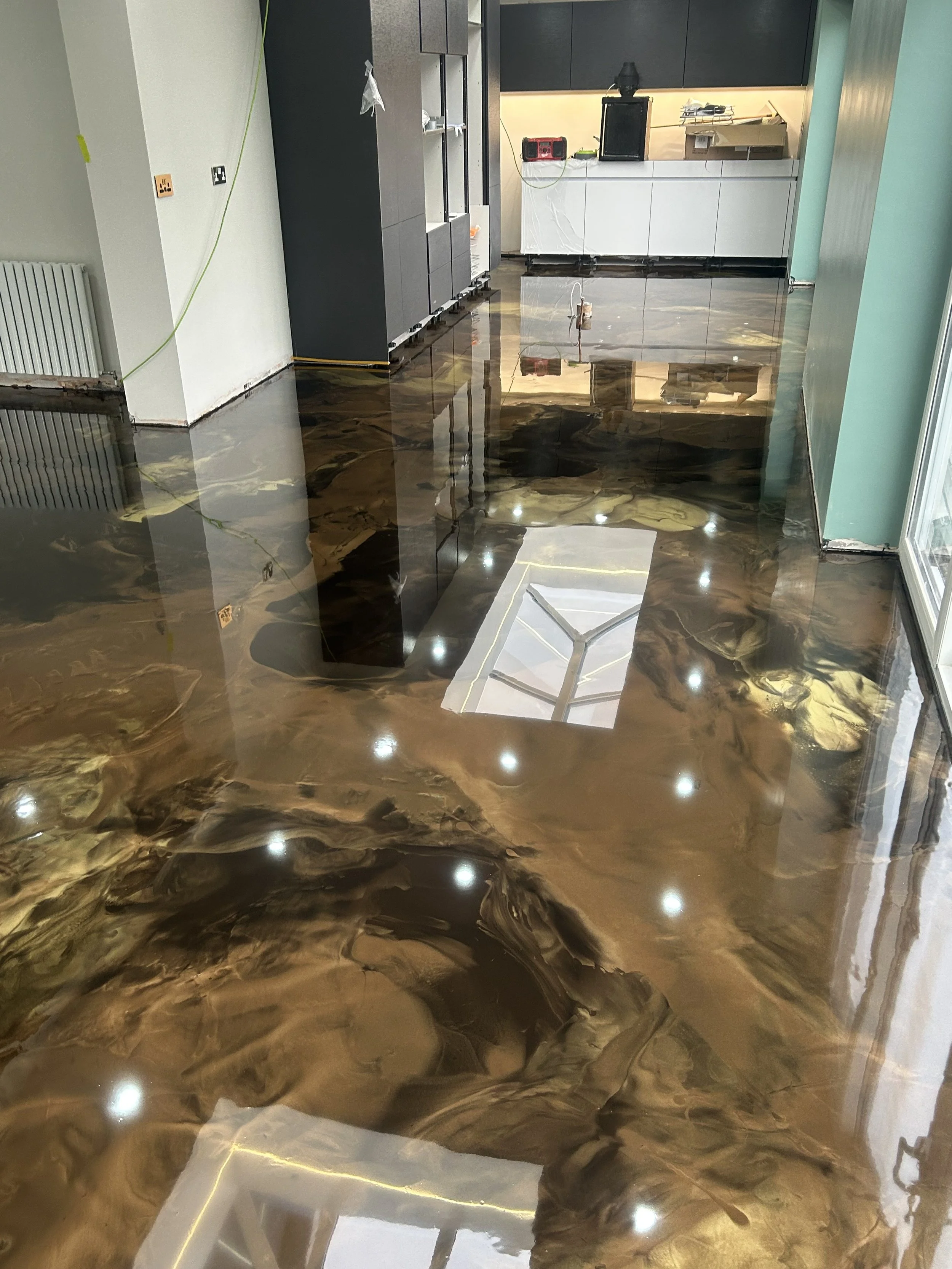 The result was a striking decorative epoxy resin flooring effect that looked completely unique — no two floors could ever be identical.