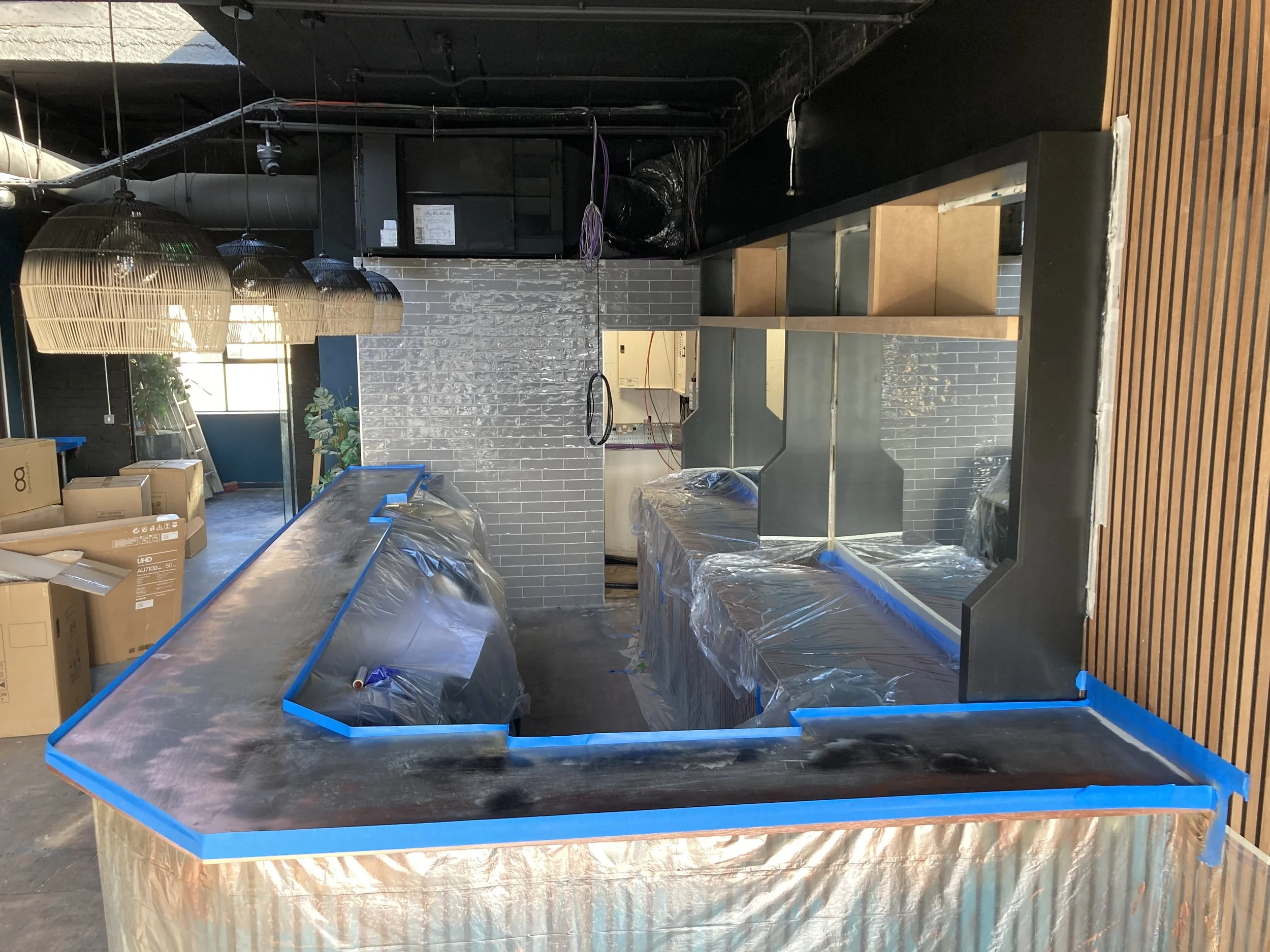 Throughout this blog, you’ll see photos of the finished bar, floor, and design process, showing how we brought The Cove to life — from shimmering resin bar tops to a metallic epoxy floor that looks like a tranquil tropical lagoon.